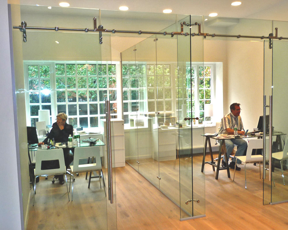 Spatiile de business dar si cele rezidentiale utilizeaza tot mai mult sticla pe post de separator al incaperilor. Se ofera astfel o senzatie de spatialitate sporita si o iluminare natural auniforma.