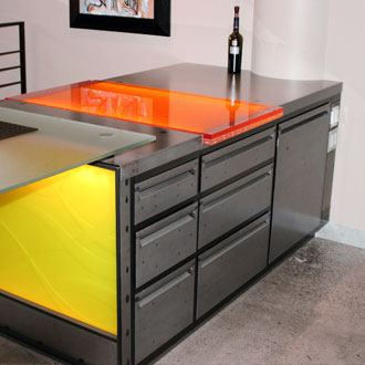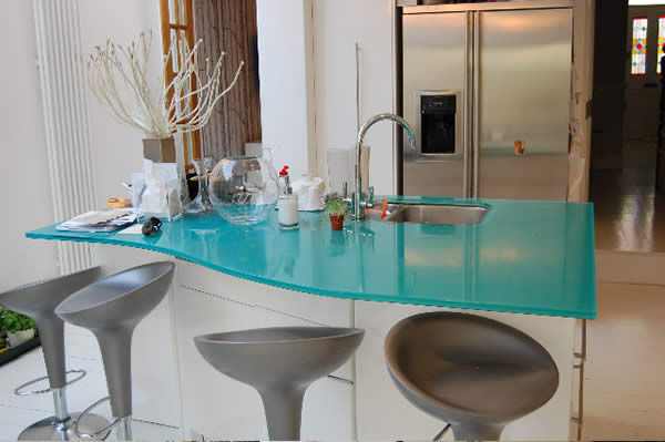 Aplicatiile frecvente consta in blaturi de bucatarie, pereti in bucatarie sau baie din sticla colorata sau mata.